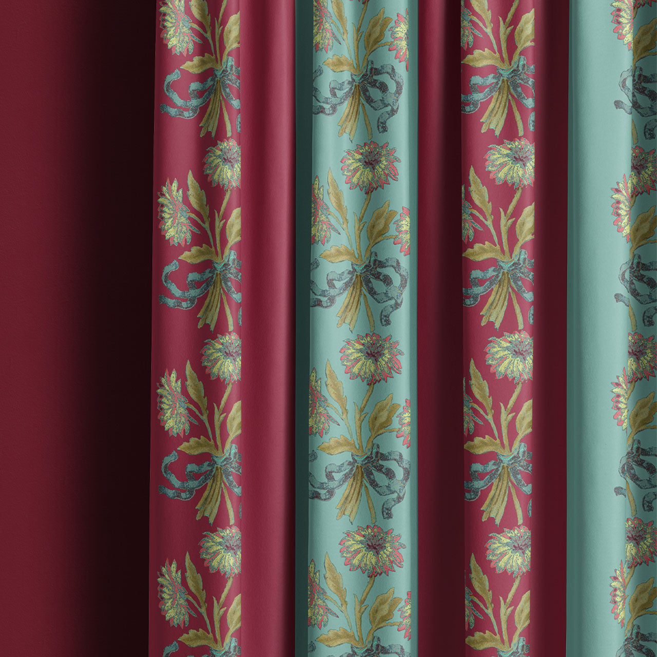 Chateau Stripe is available in 6 different colourways: Ink and Mint, Ink and Blue, Peach and Burgundy, Peach and Cloud, Cherry and Blue, Green and Mint.
