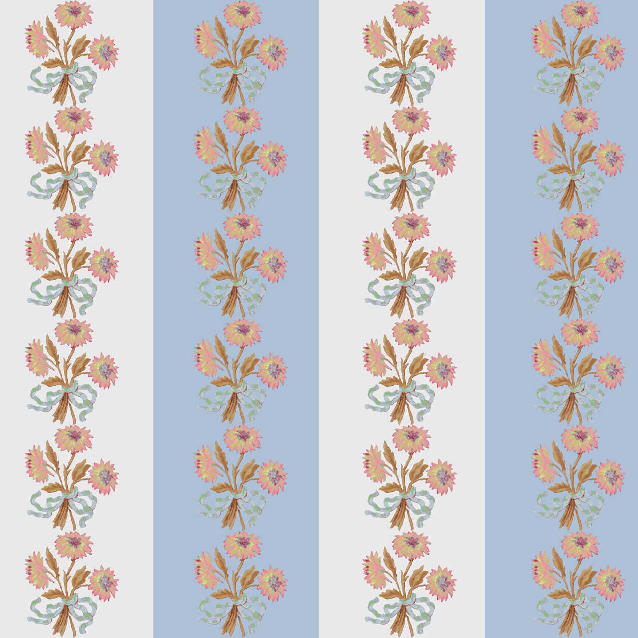 Inspired by the grandeur of French estates, "Chateau Stripe" combines ornate floral motifs and ribbon details in a classic stripe design. With its timeless elegance, this pattern bridges traditional and modern styles, offering a versatile option for both contemporary and classic interiors. The modern twist on a traditional stripe creates a refined, luxurious atmosphere, adding opulence to any space. Whether used in wallpaper or textiles, "Chateau Stripe" is perfect for those seeking to blend sophistication with charm.