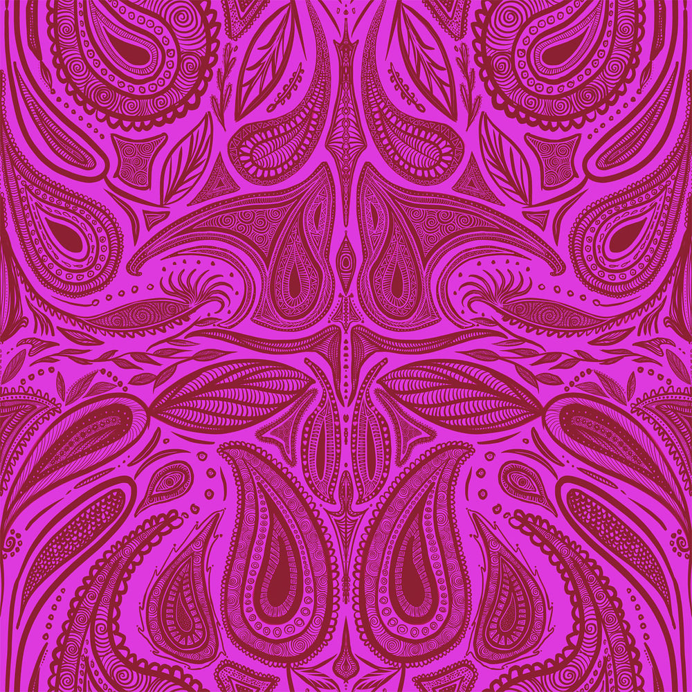 Inspired by Indian block prints this intricately hand drawn design creates a stunning ornamental pattern of paisley, botanical leaves and shapes. The classic paisley design is thought to have been a representation of a floral spray combined with a cypress tree.