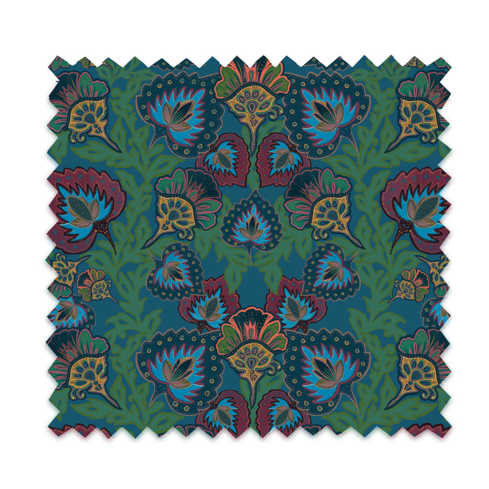 One for maximalists, our hand-drawn Garden of India design features a flourishing trellis with a folkloric feel. Illustrative of the country’s abundant natural beauty and visceral energy, it imagines lush and leafy botanicals in deeply saturated jewel tones.