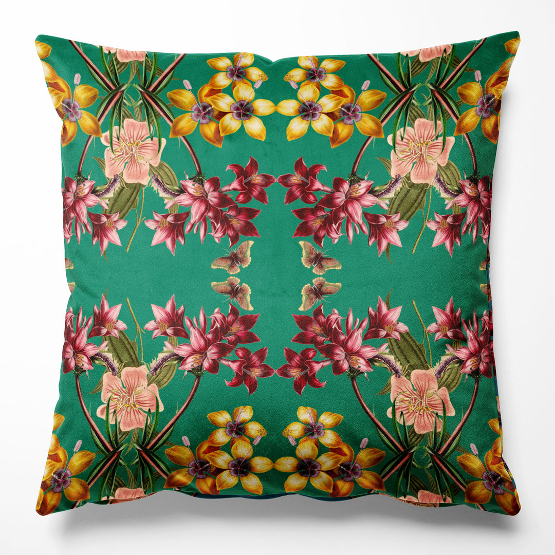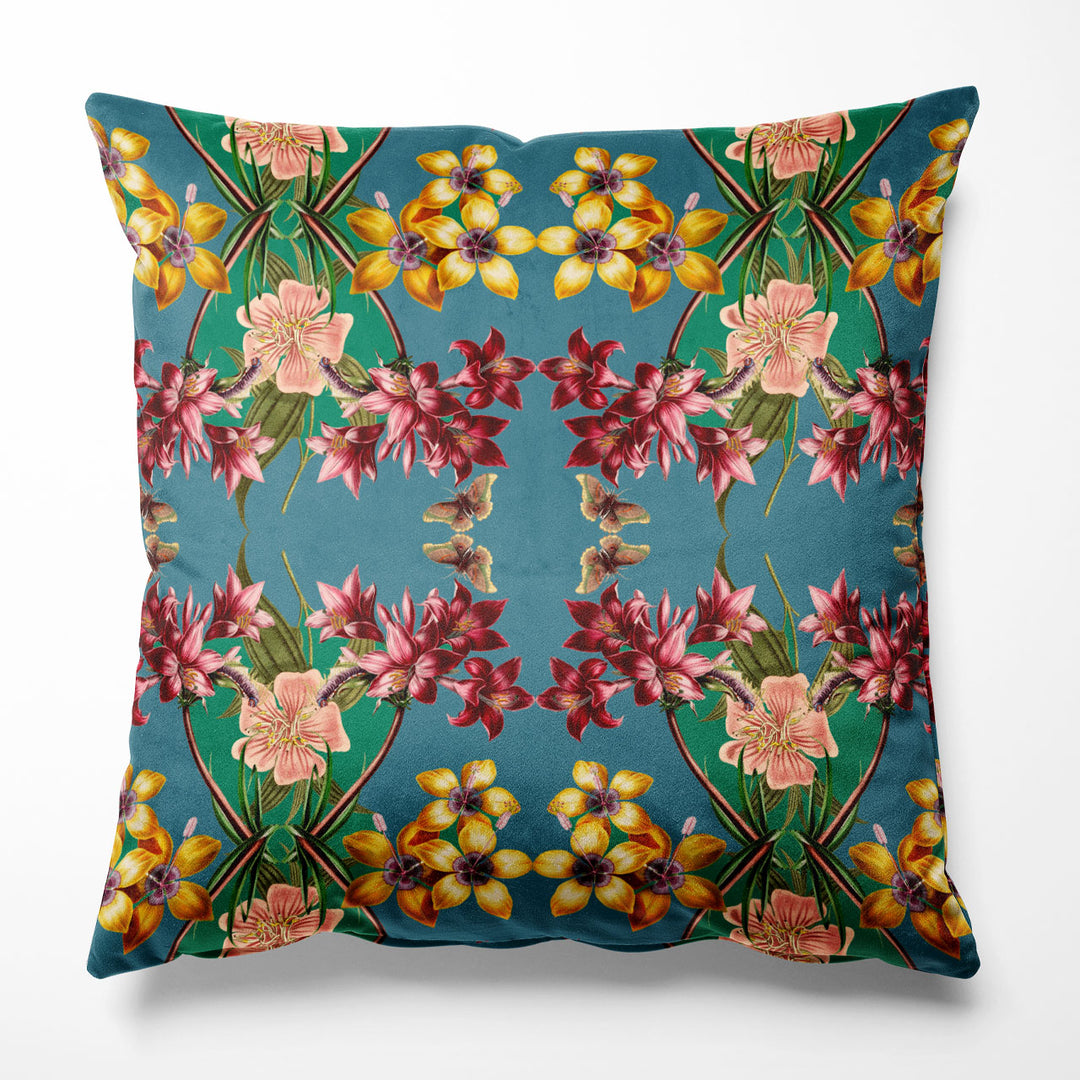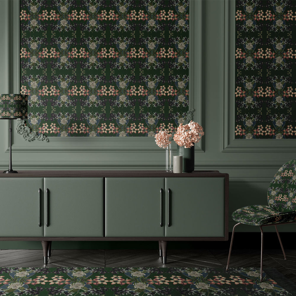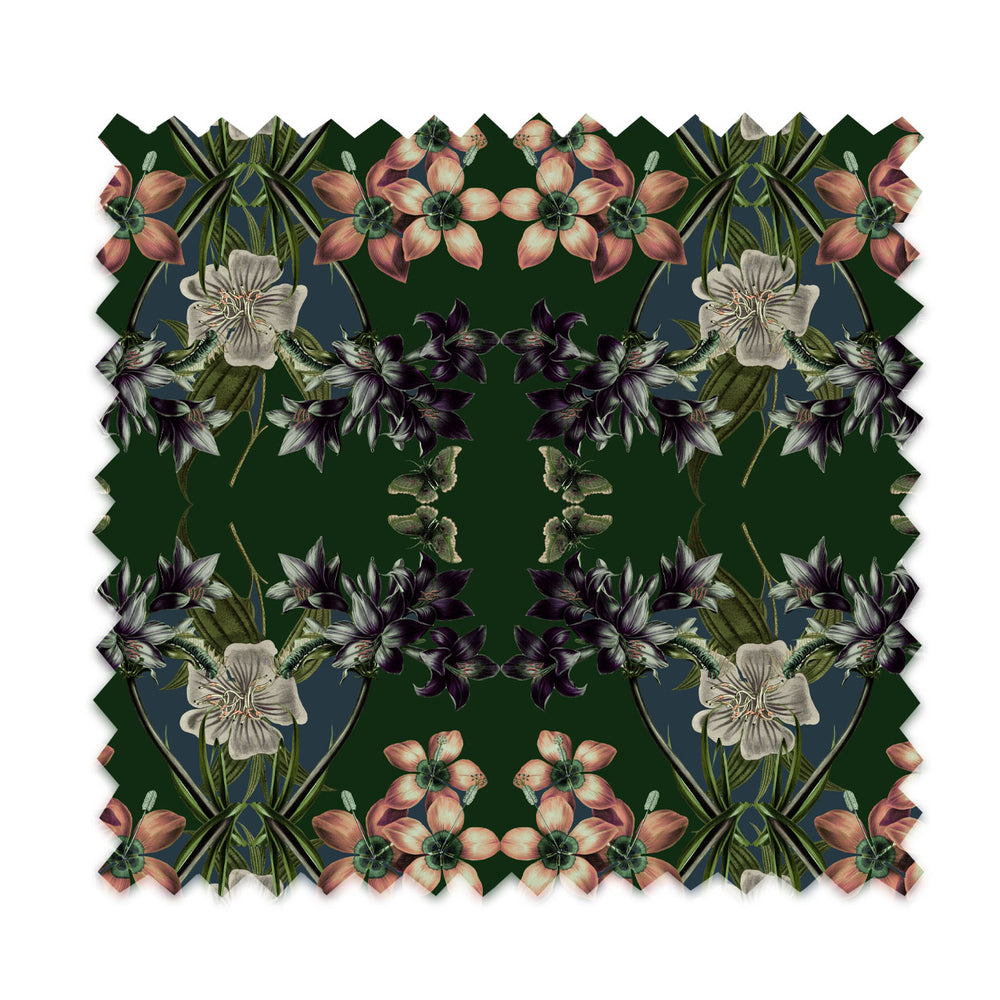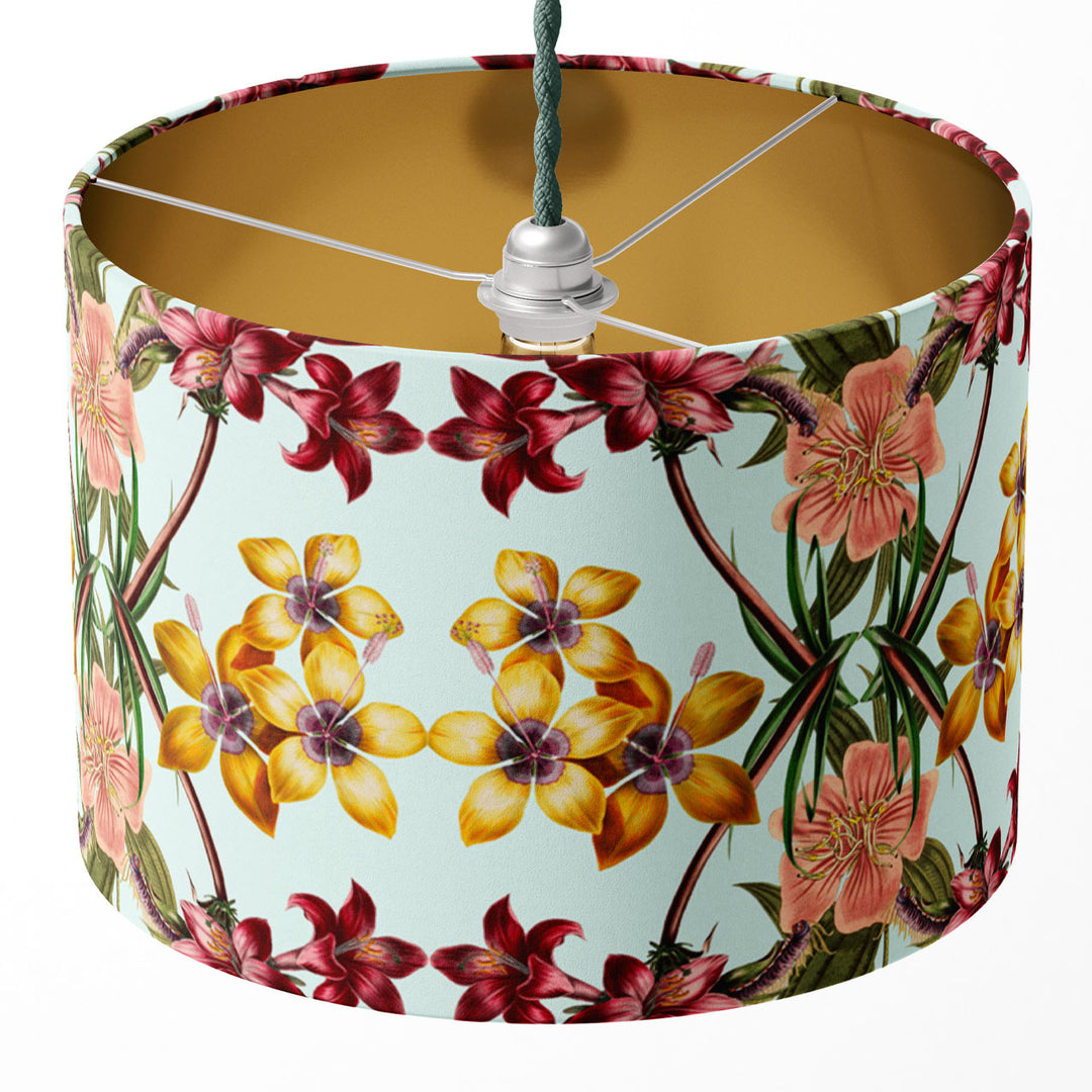 Our joyful Hampi design takes its name from the once-lavish Hindu city in southern India, where evocative ruins and ethereal landscapes evoke legends of idols and monkey gods. A fantastical floral feast, the design features an exotic kaleidoscope of yellow, blush, and burgundy blooms.