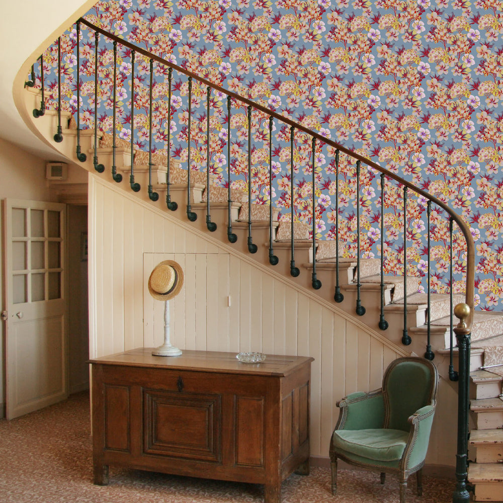 Inspired by the forms, colours and painterly details of vintage botanical illustrations, Les Fleurs is a luscious floral arrangement brimming with energy and life. Richly saturated and abundant, this maximalist pattern will deliver a joyful dose of oversized blooms to your space year-round.