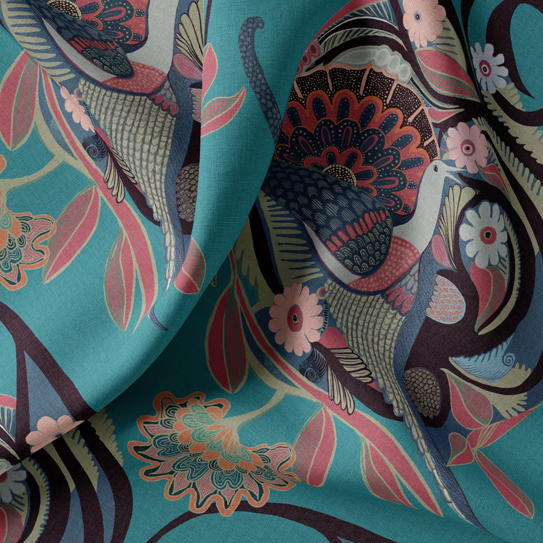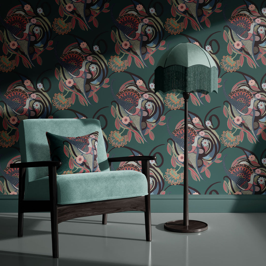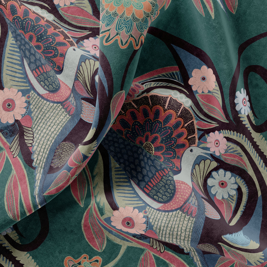 Our hand-drawn Phoenix design will infuse your space with a fresh, positive energy. Featuring a swirling, hypnotic illustration of the ancient mythical bird on a nest of flowers, the repeat print is a powerful spiritual symbol of strength and new life.